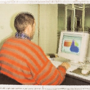 Yelena and Viktor Vorobyev will present two projects that were born in the 1990s. The two drawings depict the famous installation by the art duo “The Artist is Asleep” (1996), which was exhibited at the 2017 Venice Biennale. And a weaved canvas depicting Viktor Vorobyev at a computer in 1998 at a web design course organized for artists by the Soros Center for Contemporary Art, makes one think about the essence of the act of creation and the role of technology in art.