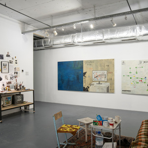 Aspan Gallery presents "Work in Progress", a duo exhibition bringing together two artists — Roman Zakharov and Leonid Khan. Their artistic practices have developed through constant proximity and dialogue. The project takes the form of a simulated studio reconstructed within the gallery space: the artists’ actual studios are located side by side, separated only by a wall. This physical and mental closeness becomes a starting point for reflecting on shared artistic processes, differing creative strategies, and the coexistence of contrasting artistic languages.