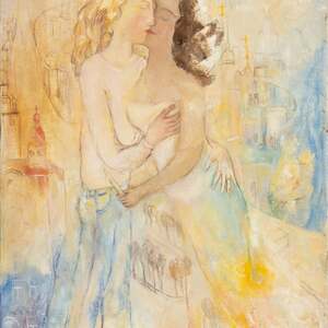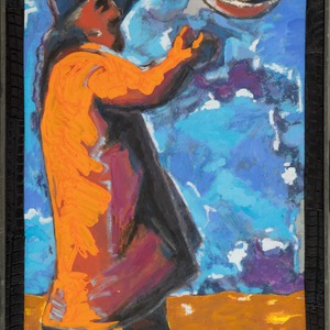Работы рано ушедшего из жизни Молдакула Нарымбетова – художника-шамана, лидера группы «Кызыл Трактор» – не показывались в Алматы уже много лет. На монументальном по размеру холсте Нарымбетов написал оммаж известной картине Анри Матисса «Танец». В композицию автор включил фигуры художников-соратников по «Кызыл трактору» Смайла Баялиева, Арыстанбека Шалбаева, Виталия Симакова, Саида Атабекова и самого себя в процессе танца и музицирования, указывая на их собственные перформансы 1990х годов, которые часто сопровождались шаманскими танцами и музыкой.