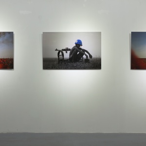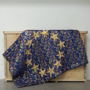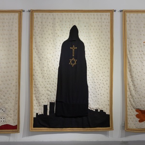 Малиец Абдула Конате подобно своему казахстанскому коллеге искусно сочетает региональное с глобальным. В его программной работе «Инициация», которую для выставки предоставил фонд Синдики Доколо – одного из самых известных коллекционеров современного искусства в мире, присутствуют как характерные лишь для Западной Африки символы, так и легко узнаваемые нами советские серп и молот, французский триколор, а также персонификация американской свободы. Абстрактные же композиции Конате – своеобразный оммаж локальным западноафриканским традициям не только прикладного, но и музыкального искусств. Учитывая связь между цветом и звуком (в духе синестезии), можно воспринимать его абстракцию как музыкальную партитуру, где каждый цвет имеет собственное звучание.